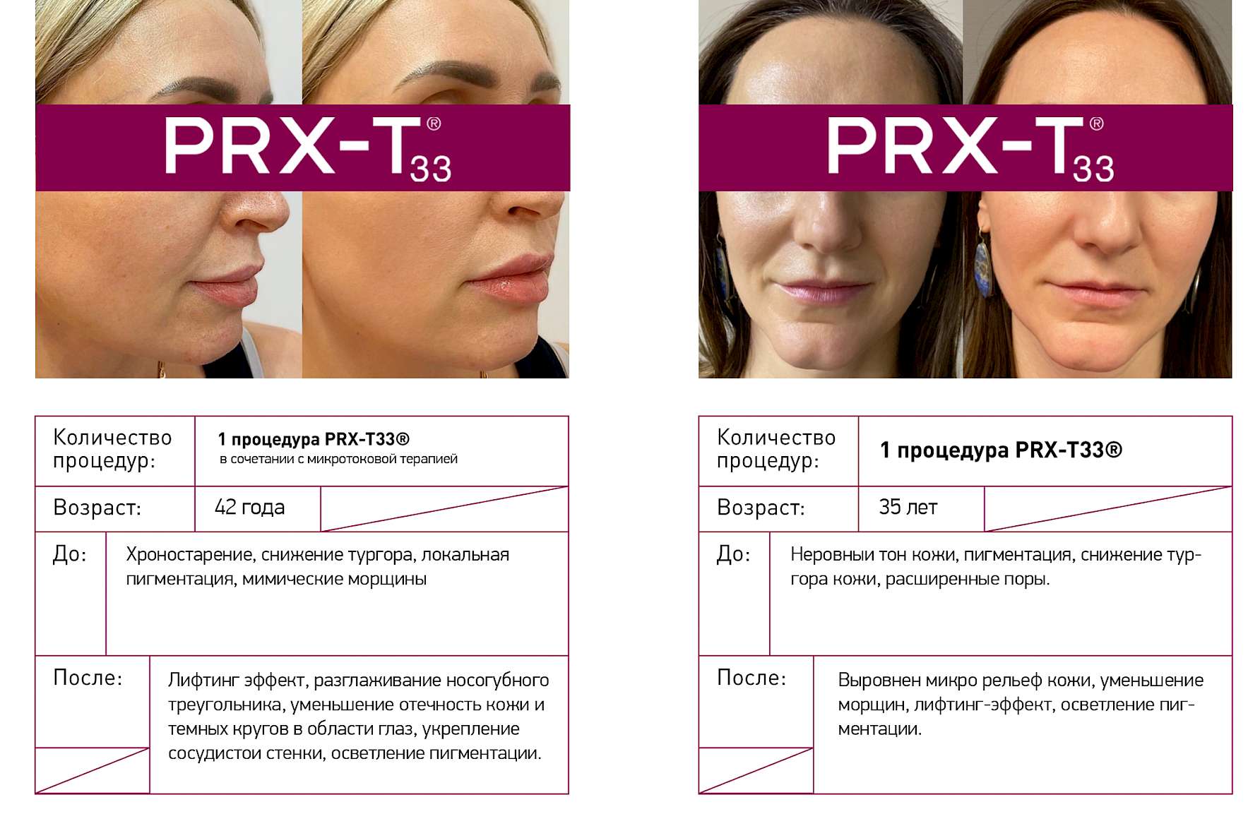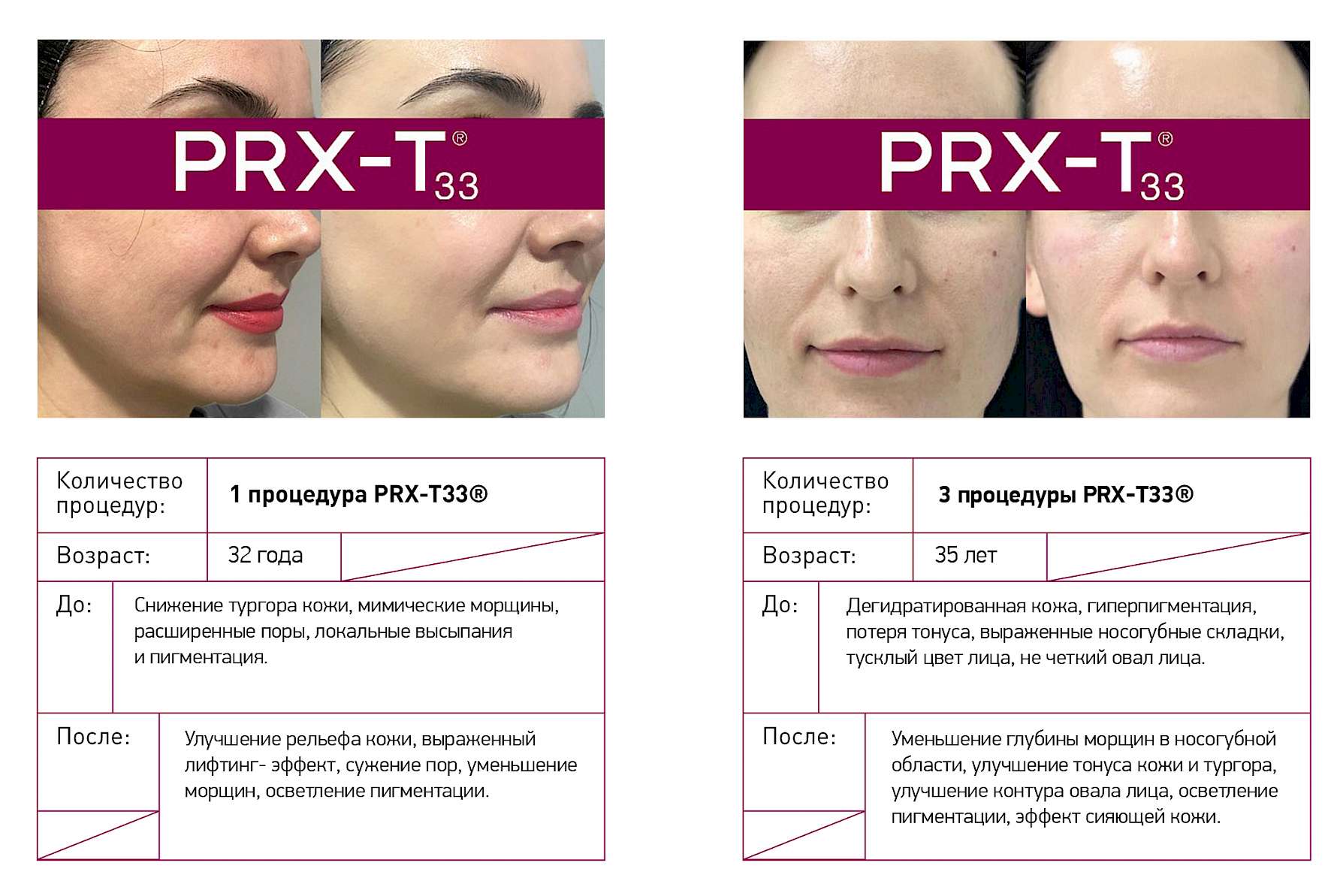 PRX-T33® - это новое качество кожи и безграничные возможности применения: от процедуры для лица «на выход» до мощнейшей стимуляции дермы в сочетании с аппаратными и инъекционным методиками.