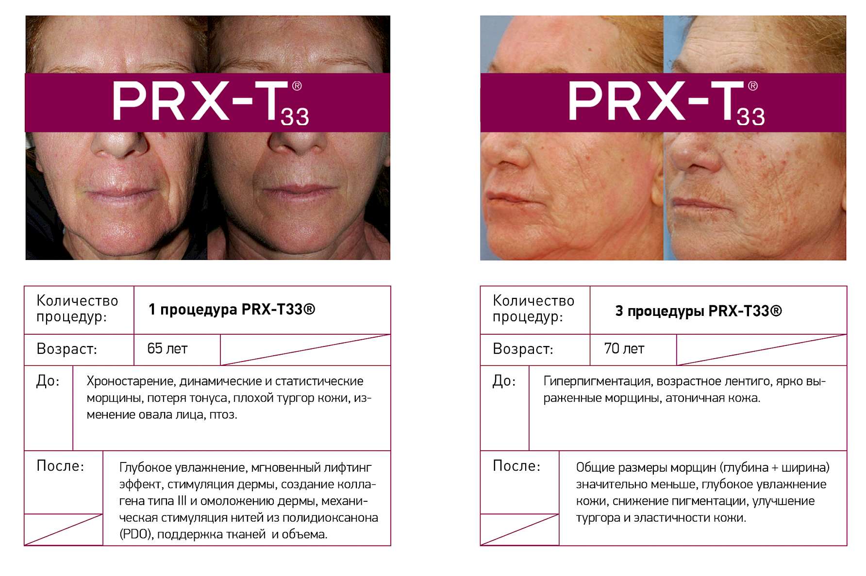 PRX-T33® - это комплексная программа профессиональных процедур и домашнего ухода для активного естественного восстановления и омоложения кожи, в результате которой не повреждается эпидермис, но формируется новый коллаген и обновляется структура клеток. PRX-T33® терапия - это сенсационное открытие в эстетической медицине: запатентованная гибридная молекула PRX-T33® , проникая до сосочкового слоя дермы, запускает целый каскад реакций, глубоко стимулируя кожу.